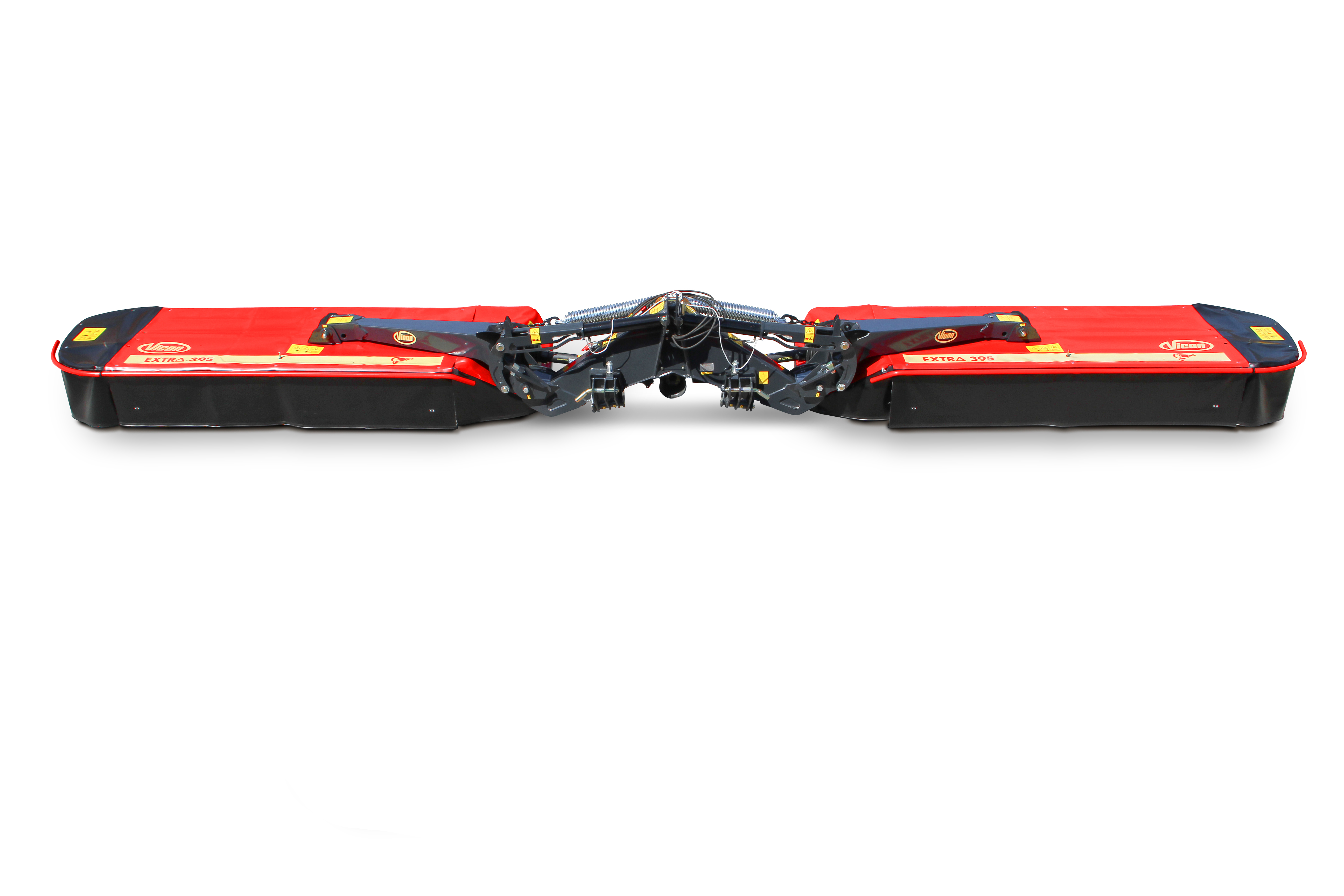 Die Vicon Scheibenmähwerkskombination EXTRA 390 und EXTRA 395 sind Butterflyfly Mähwerke mit einer max. Arbeitsbreite von 8,50 m bzw. 9,50 m. Beide Modelle bestechen durch ihr geringes Eigengewicht von 1.360 kg bzw. 1.500 kg. Die mittig aufgehängten Mäheinheiten sind mit den bewährten Dreiklingen Mähscheiben ausgestattet und bieten somit eine unübertroffene Mähleistung.